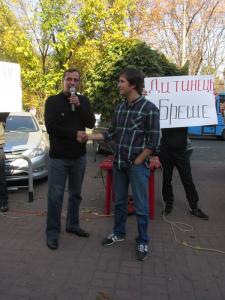 Головні чернігівські люстратори - Олександр Бондарєв та кандидат у нардепи по 206 виборчому округу Олексій Корж влаштували сьогодні, на Покрову перформанс під будівлею телеканалу "Дитинець".