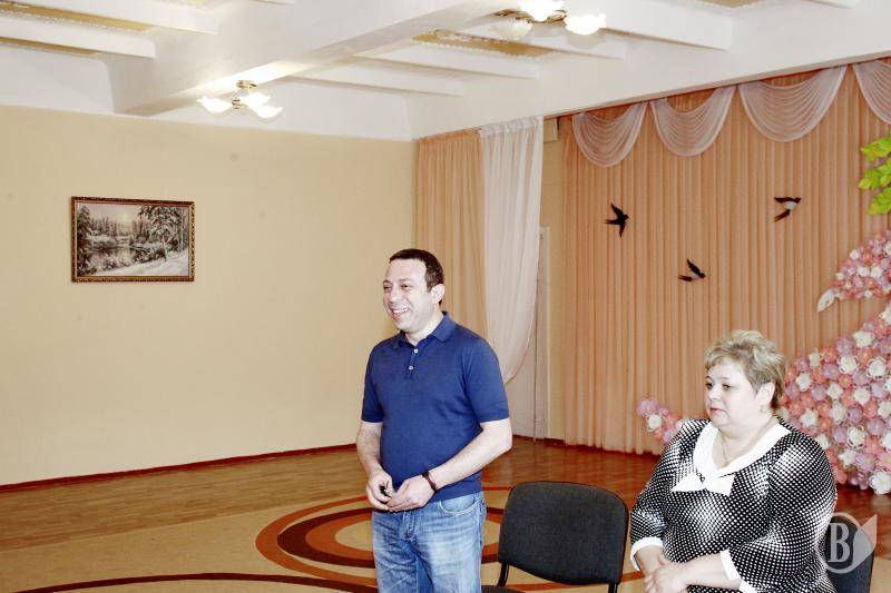 Геннадій Корбан спілкувався з вихователями так, ніби вони давно знайомі. Геннадій розповів, що сам виріс не у багатій сім'ї. «Я теж проста людина, з сім'ї інженерів. Прожив із батьками до 16 років у комуналці».