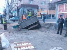 Схоже, таких ударних темпів і навантажень не витримує будівельна техніка, яка занурюється в асфальт.