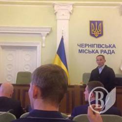 Новообраний мер склав присягу та оголосив про перенесення сесії – у зв’язку із повідомленням про замінування – до великої зали Чернігівської ОДА.