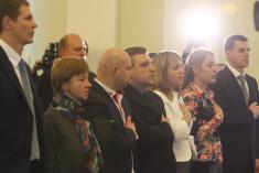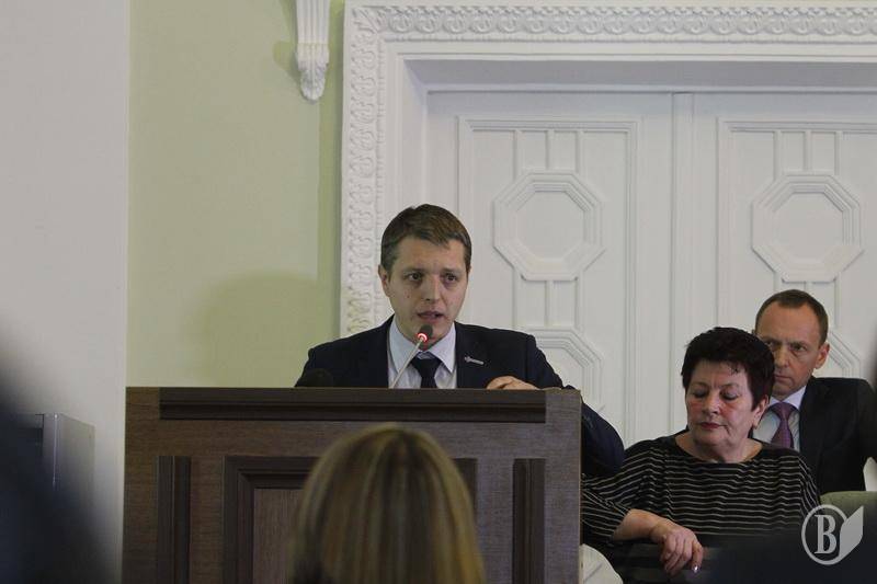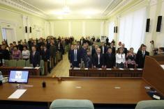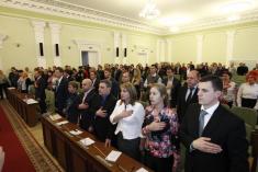 Владислав Атрошенко зачитав присягу посадової особи місцевого самоврядування, текст котрої затверджений статтею 11 Закону "Про службу в органах місцевого самоврядування".