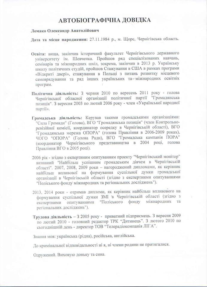 - ЛОМАКО Олександр Анатолійович, кандидат на посаду заступника міського голови з питань інформаційної політики та стратегічного розвитку, директор телеканалу «Дитинець».