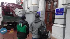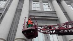 Зараз біля міської ради проводяться монтажні роботи, що і послужило приводом для інформації.