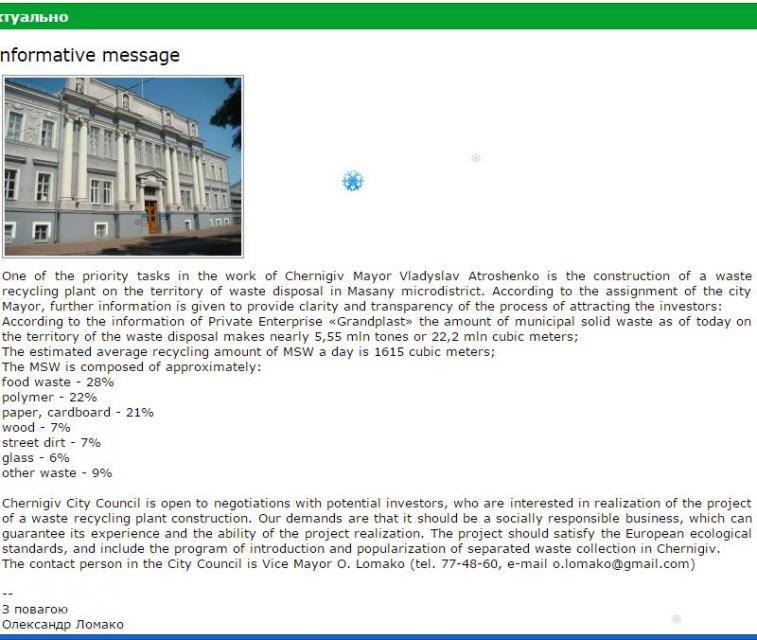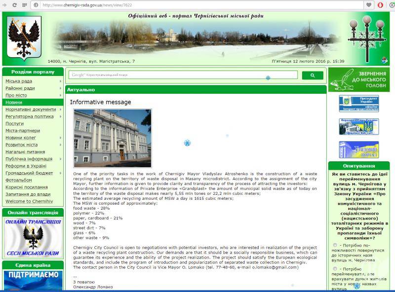 3.01.2016 Чернигов ищет инвесторов для строительства мусороперерабатывающего завода