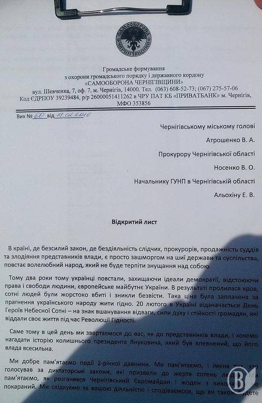 Свои требования срочных и решительных реформ активисты оформили в открытые письма к и.о. городского головы Чернигова, руководству областной прокуратуры и Главному управлению Национальной полиции в области(ГУНП).