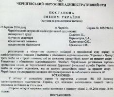 Про це сказано у постанові Чернігівського окружного адміністративного суду, яку навів перед сьогоднішнім засіданням міської ради президент Чернігівської торгово-промислової палати Костянтин Іванов.