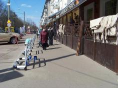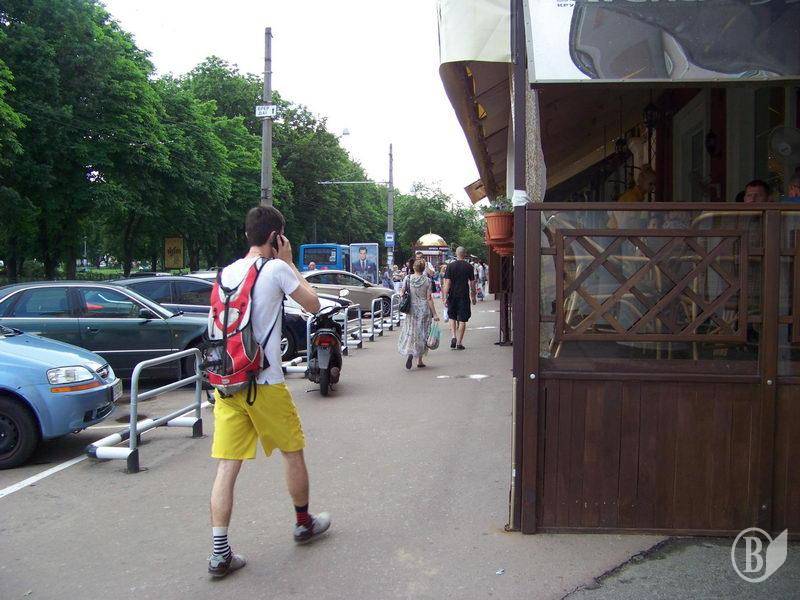 І якщо ділянка тротуару вздовж просп. Миру від магазина "Янтар" до вул. Шевченко має цивільний і європейський вигляд, то цього не можна сказати про відрізок тротуару біля готелю "Україна" і спасибі власникам закладів "Шарлотка", "Варенична", "Челентано", "Паста Баста", "Робата", що вони не виявилися такими ж нахабними, як власник "Авеню 33" і не вкрали у пішоходів їх зону.