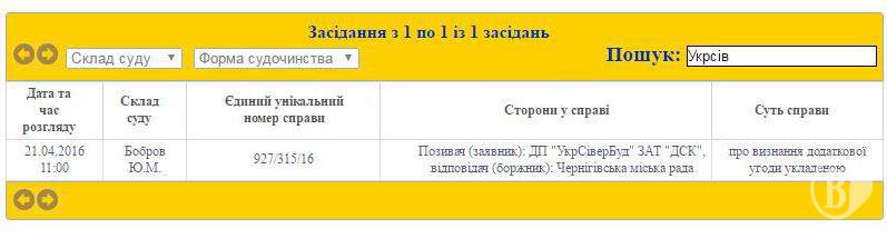 Речь идет о рассмотрении искового заявления этого застройщика в Черниговский городской совет, назначенное именно на эту дату в Хозяйственном суде Черниговской области.