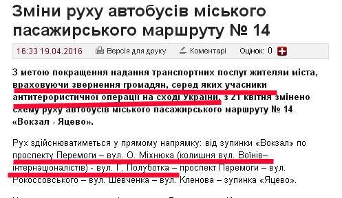 Не здивуюся, якщо після такого прояву чуйності міського голови учасники АТО захочуть, щоб 14-й в бік Яцево проходив через перехрестя вулиць Горького та Родимцева, де проживає мер.