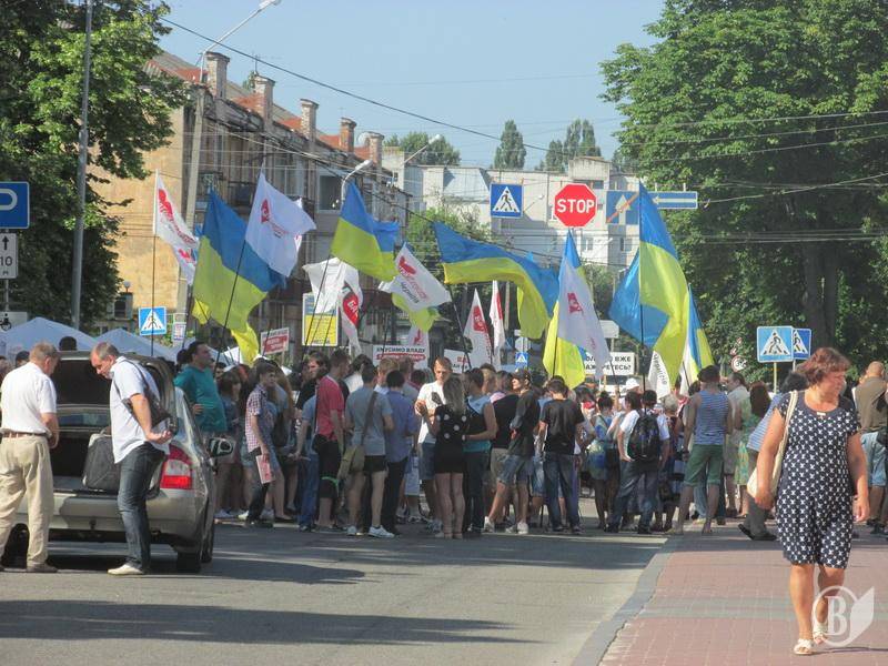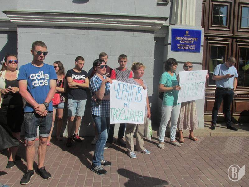 Відомий у Чернігові «поводир» бабусь під час мітингів – Андрій Глаба – привів 10-15 мітингарів. Одне з їхніх гасел – «Власенко йди з виконкому».