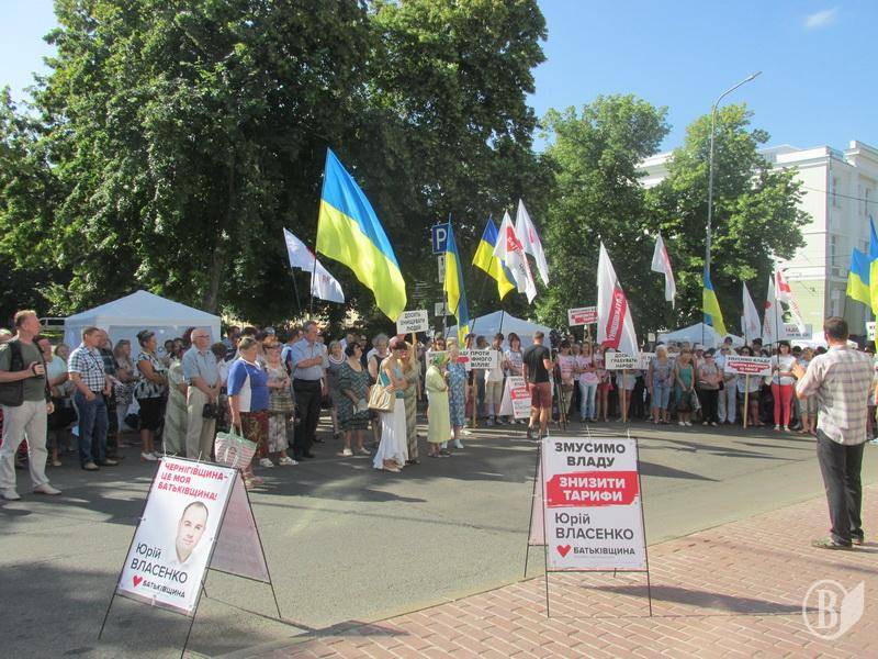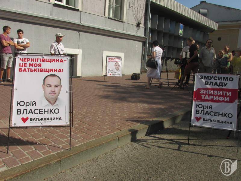 Під стінами Чернігівської міськради представники "Батьківщини" агітують за Власенка і проти тарифів