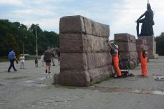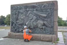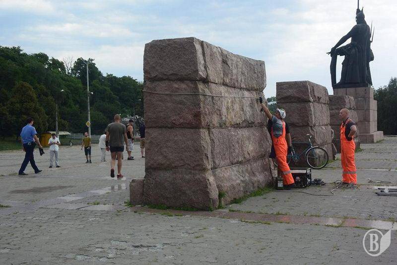 Около Болдиной горы, именуемой в советские времена «Холм славы», проводится декоммунизация большевистских барельефов.