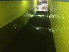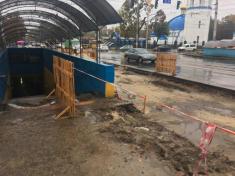 Через розритий котлован на зупинці по вулиці Небаби, чернігівцям доводиться перебігати дорогу у невстановленому місці. Зупинкою далі – на перехресті вулиць Героїв Чорнобиля через ті ж таки роботи затопило підземний перехід, через що люди, ризикуючи життям, переходять проспект. У підземці ж не встигають відкачувати воду: у неділю надзвичайники викачали звідти 180 кубометрів, в понеділок цим займаються фахівці комунального АТП 2528.