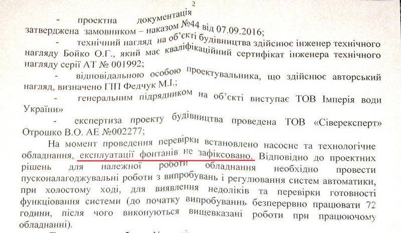 Інспектори управління Державної архітектурно-будівельної інспекції у Чернігівській області не виявили факту експлуатації нових фонтанів у Чернігові восени 2016 року.