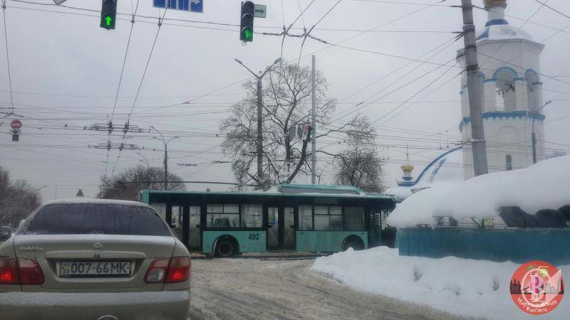 Сьогодні, 12 січня, на перехресті Героїв Чорнобиля та проспекту Миру, від нього відвалився один зі струмоприймачів, по-народному, «рогатик» втратив один із рогів.