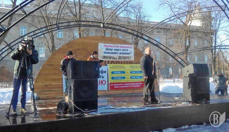 На центральній парковій алеї біля літньої «Зеленої сцени» триває мітинг підприємців Чернігова.