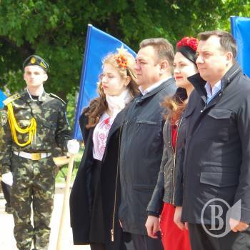 Прозвучали пафосні промови від представників влади. Підняття прапору Європейського союзу, за класикою жанру і радянською традицією, доручили студентці, красуні, спортсменці, однак не комсомолці.