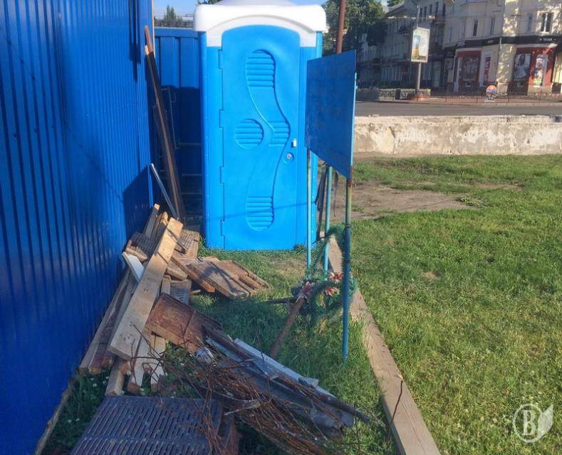 Тобто робітники ходять справляти свої потреби до місця пам’яті тих, хто віддав своє життя за Україну. Причому це ж місце вони безпардонно завалюють будівельним мотлохом.