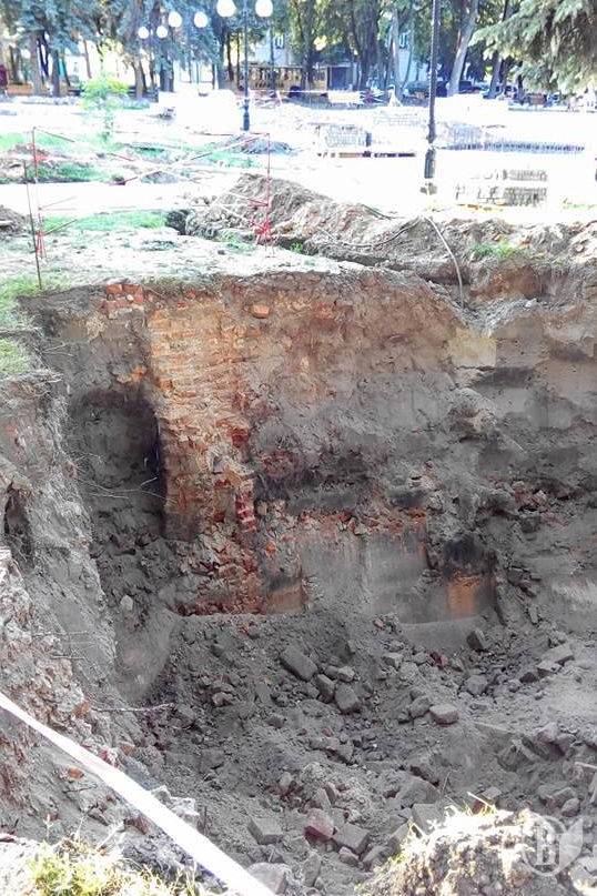 Поки в Ніжині вивчають підземелля з числа найбільш визначних археологічних знахідок України 2016 року, в Чернігові «реконструктори» руйнують екскаваторами масивні цегляні будови в землі у сквері Хмельницького.