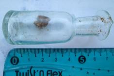 Ранкові знахідки зі скверу Хмельницького після всеочищаючої нічної зливи показав на фото чернігівець Олександр Антипець: пляшки якоїсь давньої форми та мізерного розміру, маркована гербом цегла та інше.