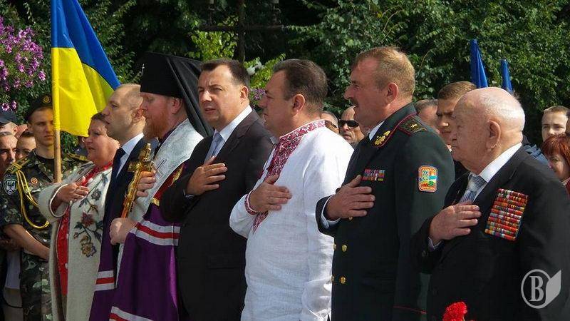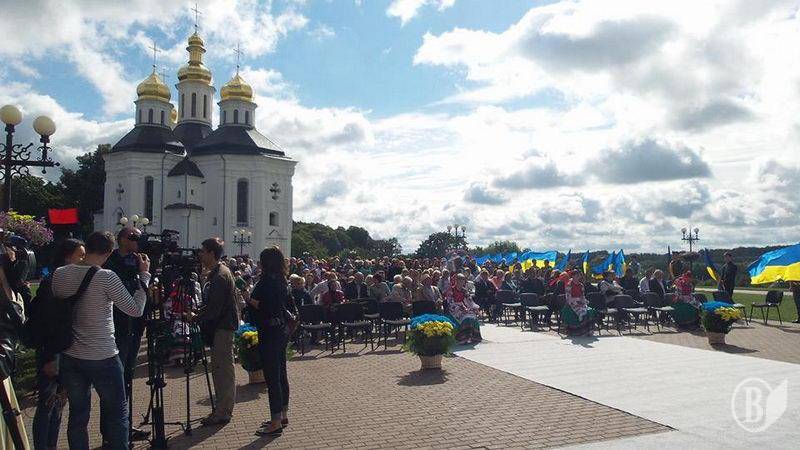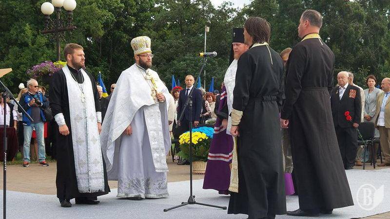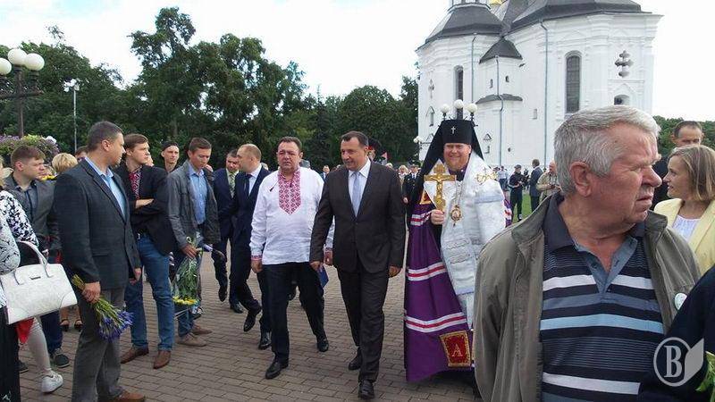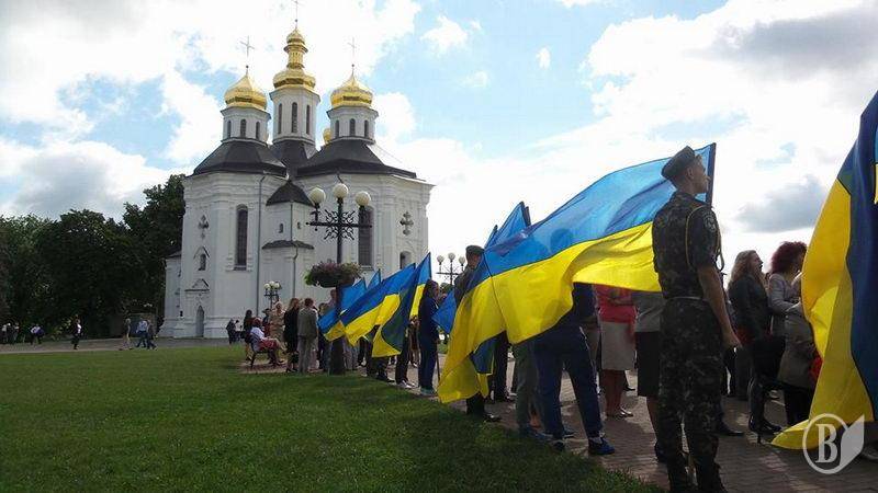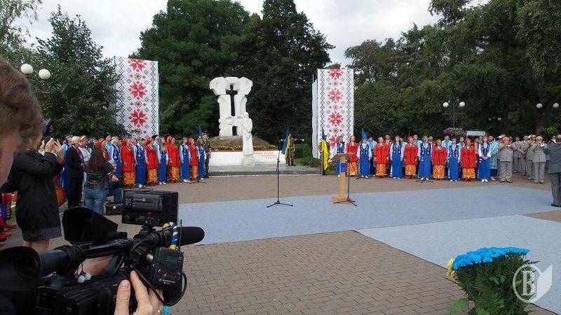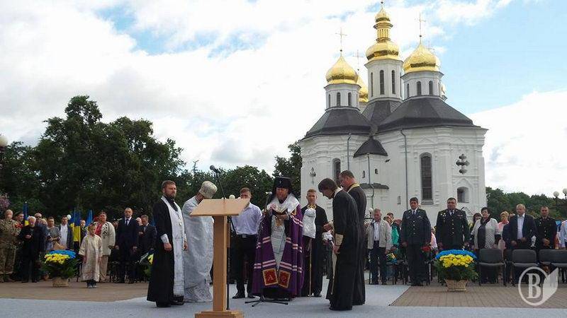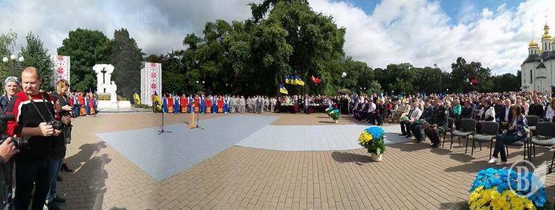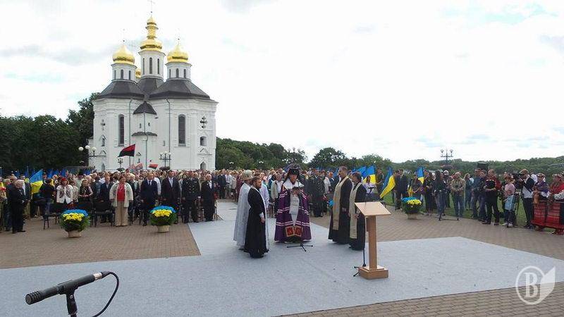Офіційні урочисті заходи з нагоди 26 річниці Незалежності України тривають у Чернігові біля пам’ятного знаку «Борцям за волю і незалежність України», що поблизу храму св. вмц Катерини УПЦ Київського патріархату.