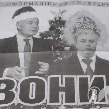 Автори навіть застосували фотоколаж, в якому мер-попередник та секретар-попередник виступають в ролі Діда Мороза і Снігуроньки.