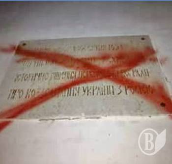 Обійшлося нанесенням закреслюючого напису. Пам’ятка архітектури Спасо-Преображенський собор, на якій закріплено табличку, жодним чином не постраждала.