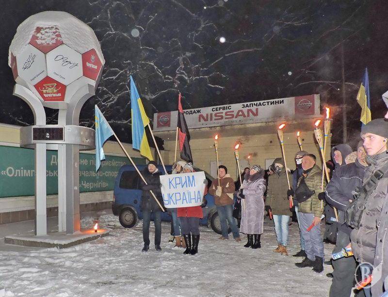 Від палацу Урочистих подій до стадіону ім. Гагаріна представники різних громадських організацій та небайдужі свідомі громадяни пройшли пішою смолоскиповою ходою.