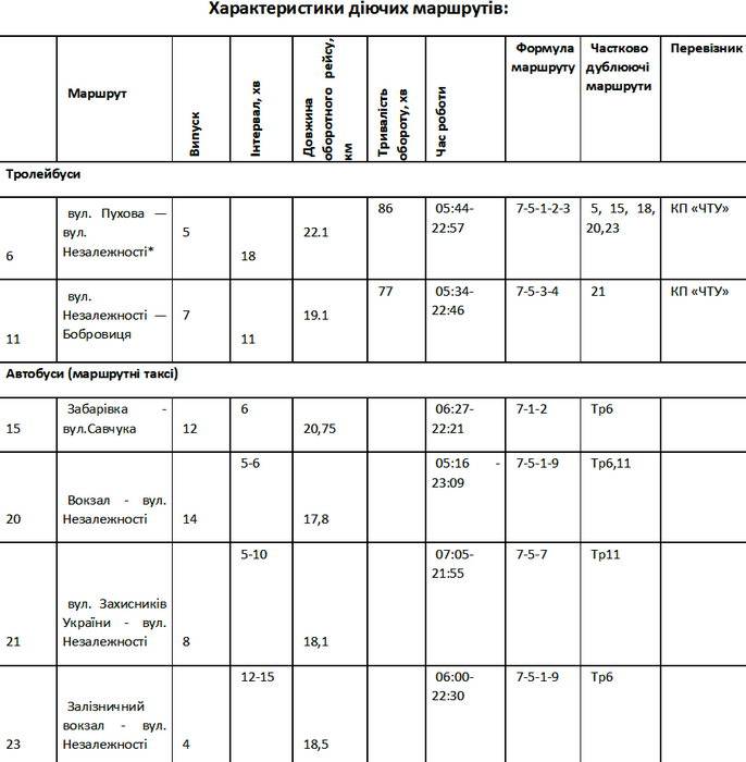 - У вечірні години тролейбуси та маршрутні таксі працюють за спільними графіками, з однією маршрутною швидкістю для забезпечення мінімального спільного інтервалу руху.