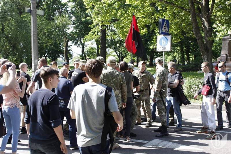 «Раптом у колоні з'явився червоно-чорний прапор боротьби і пролунало «Слава Україні». тріснули палки і впали криваві знамена, – повідомляє організація «С14». – Була перша спроба затримати націоналістів, але праві своїх відбили і залишились з трофеями».