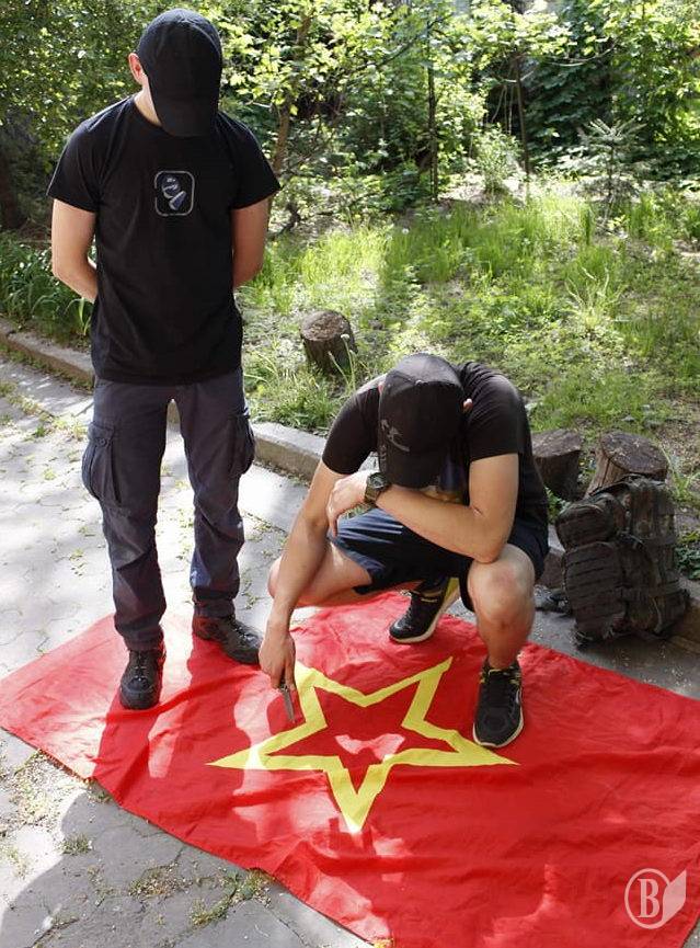 Як повідомляє інша, націоналістична спільнота С14, кількасот таких представників з українофобськими поглядами зібралися в центрі Чернігова й розгорнули, цитата, «криваві червоні шмати».