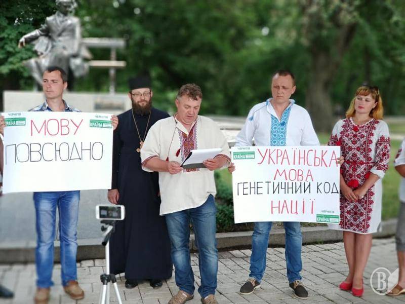 Біля памятника Тарасові Шевченку на Валу з 12 години триває акція на підтримку державного статусу української мови.