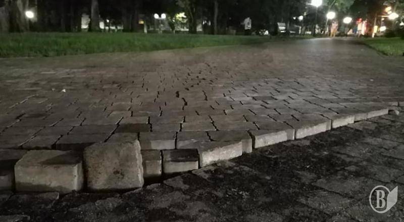 У центрі Чернігова, в багатостраждальному від тривалої реконструкції сквері Хмельницького «повилазила» бруківка.
