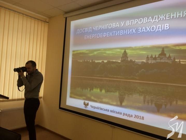 Прес-тур розпочався із зустрічі з начальником відділу енергоефективності управління економічного розвитку Чернігівської міської ради Романом Мовчаном. Він повідомив, що до Європейської ініціативи «Угода мерів» Чернігів долучився ще в 2011 році. Вже тоді міська влада взяла зобов'язання зменшити викиди вуглекислого газу та підвищити енергоефективність у бюджетній сфері.