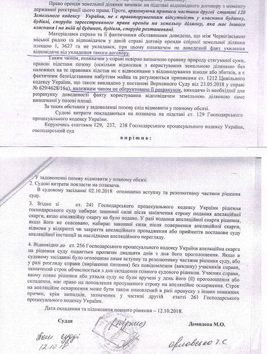 02.10.2018 р. - Рішення суду першої інстанції: «У задоволенні позову відмовити у повному обсязі» (http://reyestr.court.gov.ua/Review/77086068).