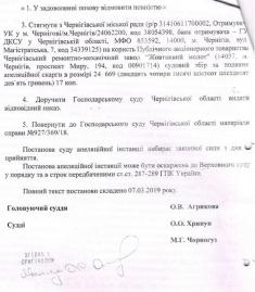 06.03.2019 р. - Постанова Північного Апеляційного господарського суду: «Прийняти нове рішення, яким в задоволенні позовних вимого відмовити повністю» (http://reyestr.court.gov.ua/Review/80307626). Постанова набирає законної сили з дня її прийняття.