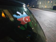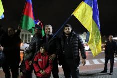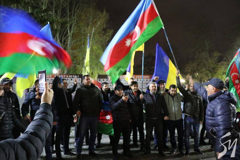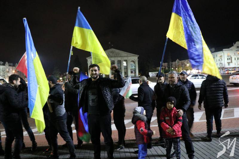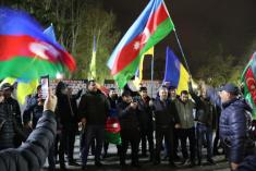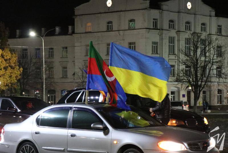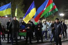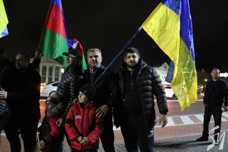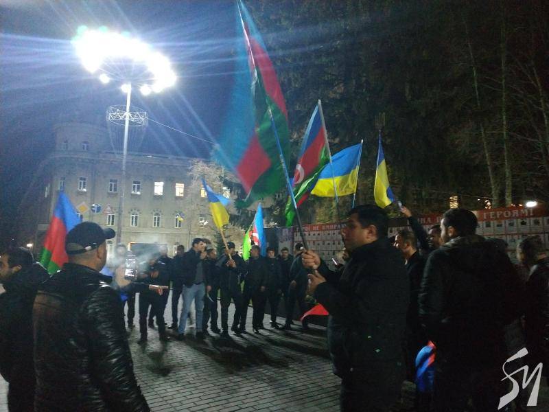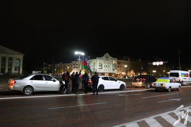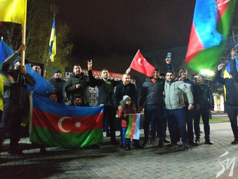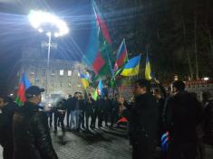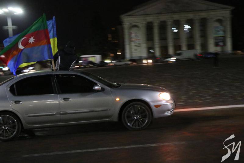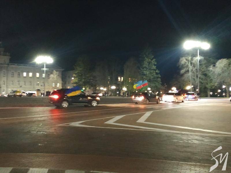 Громада азербайджанців у Чернігові, у вівторок, близько 18:15, виїхала на автомобілях на центральну площу Чернігова з українськими, азербайджанськими та турецькими прапорами.