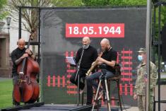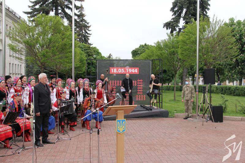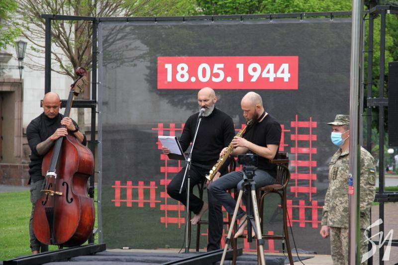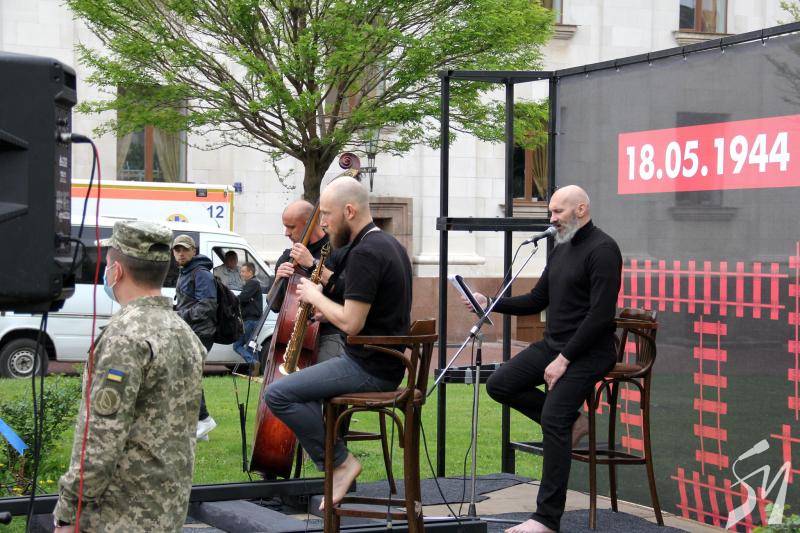 Присутнім на пам’ятній акції була представлена літературно-музична композиція «Сен олмасанъ…» (режисер та актор - Олександр Лаптій, саксофон – Нікіта Гірня, бас – Дмитро Теребун). Прем’єра цього непересічного мистецького проєкту Чернігівського обласного філармонійного центру відбулася рік тому – до 76-х роковин трагедії кримськотатарського народу. Восени минулого року проєкт став переможцем міжнародного фестивалю-конкурсу «Constelatia talentelor» («Сузір’я талантів»), що проходив у місті Кишинів, Республіка Молдова.