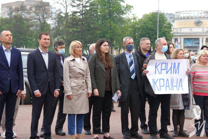 Учасники заходу вшанували жертв геноциду кримськотатарського народу хвилиною мовчання.