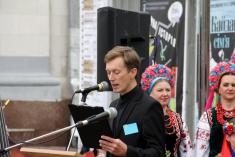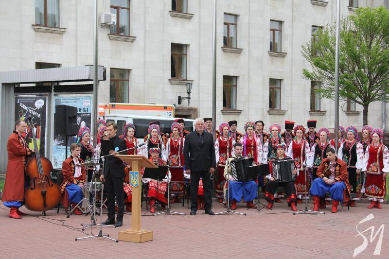 Під час урочистої частини голова облдержадміністрації Анна Коваленко, підполковник Сергій Шапоренко, голова громадської організації «Кримська громада» Світлана Кузіна та старший лейтенант Степан Гута підняли над Красною площею Державний Прапор України та прапор кримськотатарського народу. Державний Гімн України та Гімн кримськотатарського народу прозвучали у виконанні Академічного народного хору обласного філармонійного центру (художній керівник та головний диригент — заслужений діяч мистецтв України Володимир Коцур).