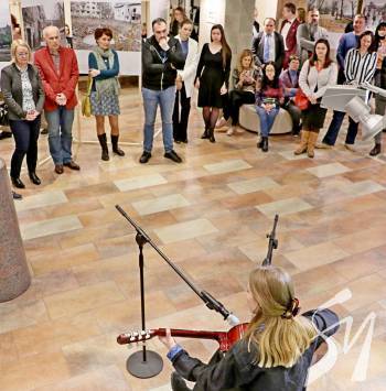 Четверо дівчат з вокального ансамблю «Вільні» виступали перед відкриттям виставки і під час неї. Вони вимушено покинули Україну, рідні Херсон і Бердянськ, і познайомилися тут, у Польщі. Виконали «Думи мої…», народні пісні. Одна, відома польська пісня, пролунала під звуки гітари. Мені здавалося, що в цей момент мені пощастило зробити одну з кращих світлин того вечора.