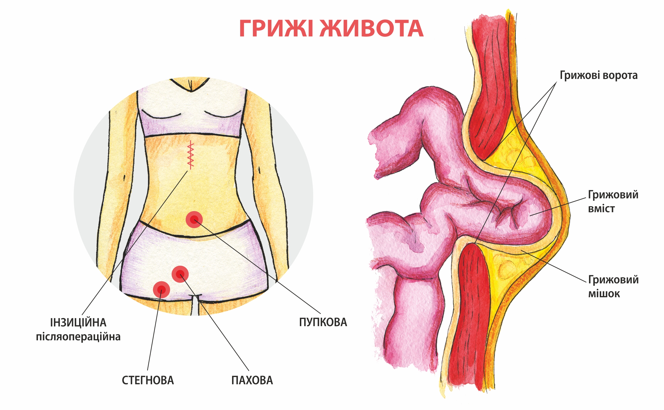 Формування грижі пов'язано з ослабленням стінки очеревини або наявністю в ній вродженого дефекту. Консервативна терапія, народні методи лікування або використання бандажу не усувають причину патології. Проблема нікуди не зникає, її треба вирішувати. Справитися з нею під силу тільки хірургам. Незалежно від виду грижі, єдиним способом, який дозволяє назавжди позбутися від новоутворення, виступає герніопластіка.