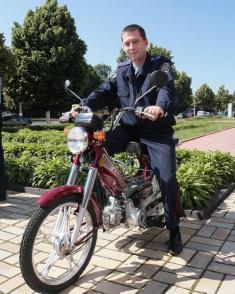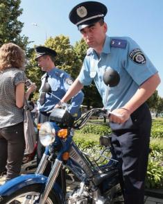 Дійсно, ганьба нашому уряду, котрий зовсім не думає за імідж міліції. Уже і на конях іздили, і на велосипедах - тепер піднімаємо китайську прмисловість. Якось не сходиться політика -то непригодні до ізди і не відповідають нормам безпеки та екології, а тут на - міліція на коні, прошу пробачення -на скутері. Зате дільничий завжди на свіжому повітрі з вітерцем та під дощем. Вдачі Вам хлопці!