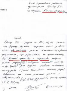 Водночас Кислий А. замовчує факт, що 23.01.2008 року заяву про надання у власність земельної ділянки площею 2,0 га подав також і він (фото 1).