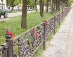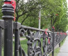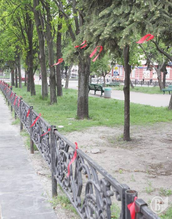 Неизвестные лица сегодня в Чернигове на Аллее Героев «оформили» заборы и деревья красными лентами. Обоснованное подозрение в организации засорения аллеи падает на представителей Коммунистической партии Украины.