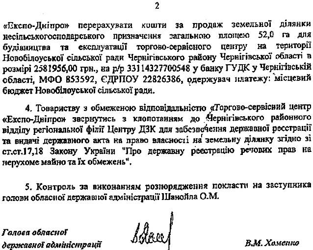 «Ведомости о выдаче председателем областной государственной администрации распоряжения №242 от 24 июля 2009 года «О заключении договора покупки-продажи земельного участка», что якобы поручено Черниговской районной государственной администрации заключить договор покупки-продажи земельного участка, утверждена цена продажи и другое, не отвечают действительности». То есть, что-то наподобие, «я не я и хата не моя».