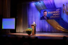 Високе зібрання відкрив член Політради Партії регіонів, голова Чернігівської обласної державної адміністрації Володимир Хоменко. Він у своїй доповіді підкреслив, що «Головною причиною хаосу й регресу, що тривали впродовж останніх п'яти років, була політична нестабільність. Саме вона, помножена на популізм, загравання з виборцями заради збереження влади будь-якою ціною, призвела до того, що Україна з її величезним потенціалом опинилася серед аутсайдерів економічного розвитку. Саме ця нестабільність заважала ефективній праці на місцях, зокрема, і на Чернігівщині.