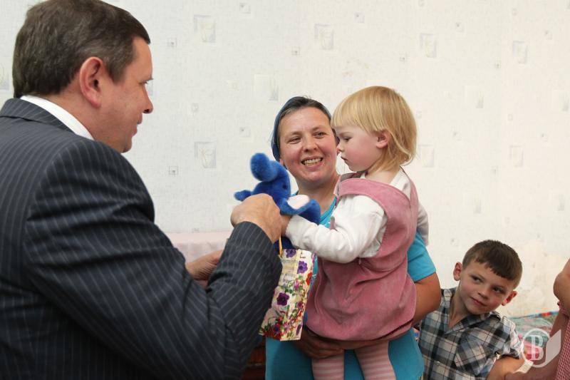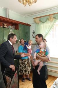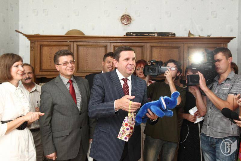 Голова облдержадміністрації ознайомився з умовами проживання родини, послухав пісню у їх виконанні, вручив дітям солодощі, а Любі Кравченко, якій саме сьогодні виповнилося 2 роки – м’яку іграшку у подарунок.