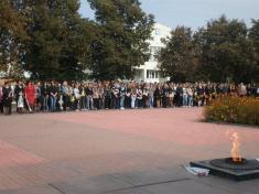 Після виступів присутні вшанували пам’ять загиблих хвилиною мовчання і поклали квіти до Меморіалу.