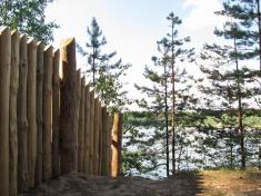 Берег приблизно на 175 чоловічих кроків обнесений високим частоколом. Загороджена ділянка займає (поки що?) близько 80 соток (0,8 га) берега Великого озера. Принаймні, так показали розрахунки.